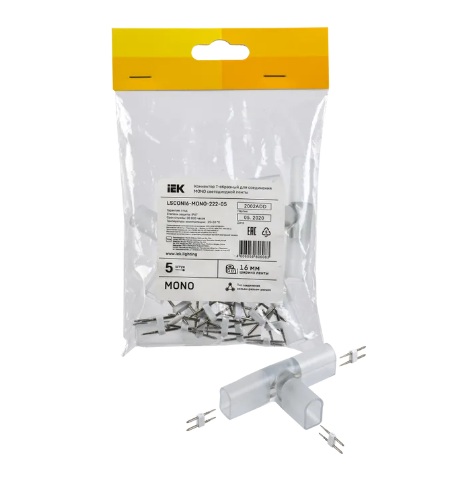 Коннектор для неона Т-образн. IEK 16мм MONO (разъем-разъем-разъем) 5шт (100)