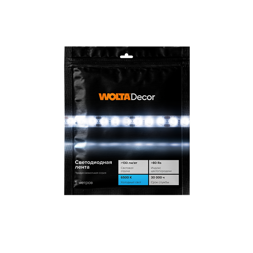 Светодиодная лента WOLTA Decor WLS2835-12W/6500/12H120-01 SMD2835 12Вт 6500К 12В IP20 120led/m 1/100