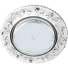 Ecola GX53 H4 LD7071 Светильник встр. искристый с подсветкой "Розы" Прозрачный / Хром 35x125 (к+)