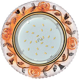 Ecola GX53 H4 LD7071 Светильник встр. искристый с подсветкой "Розы" Прозрачный и Янтарь / Золото 35x