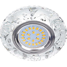 Светильник Ecola MR16 LD7071 GU5.3 встр. искристый с подсветкой "Розы" Прозрачный / Хром 25x95
