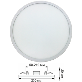 [DARV20ELC] Ecola LED downlight встраив. Круглый даунлайт с креплением под любое отверстие (50-210mm) 20W 220V 4200K 230x20