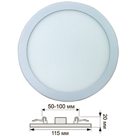 Светильник точечный круглый 8Вт 4200К Ecola (отверстие 50-100мм) 115x20мм (30)