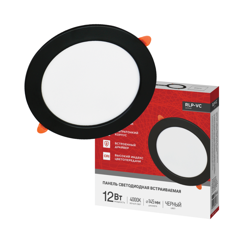 Светильник точечный круг 12Вт InHome RLP-VC 4000К 960Лм d145x65мм черный (60)
