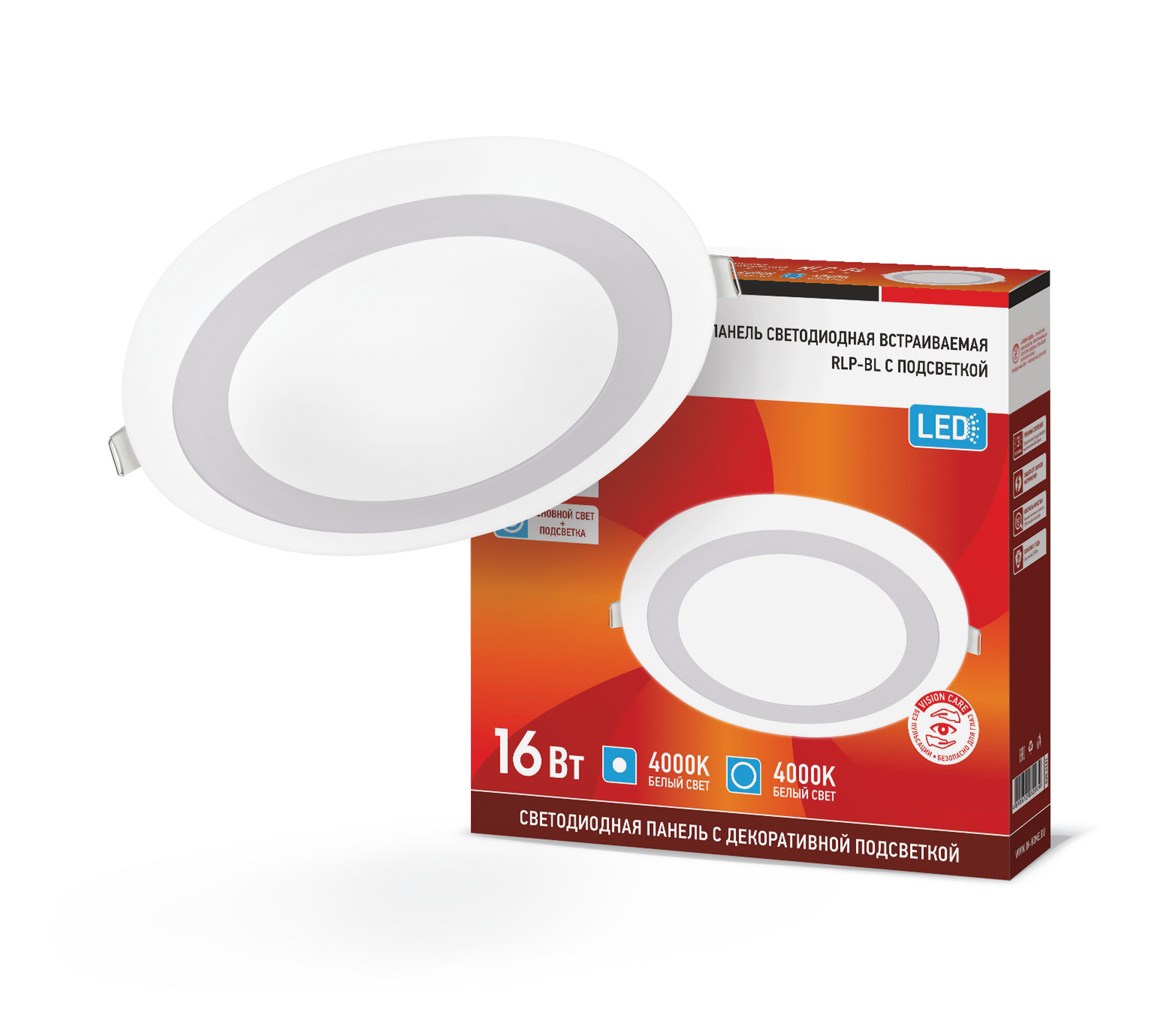 Светильник точечный круг 16Вт Inhome RLP-BL 4000К 960Лм 195мм с подсветкой белая IP20