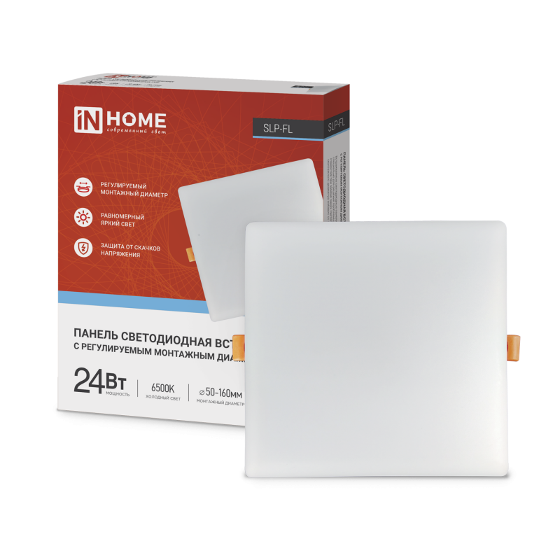 Светильник точечный квадрат 24Вт Inhome SLP-FL 6500К 2160Лм 170мм безрамочный отверст 50-160мм (1)