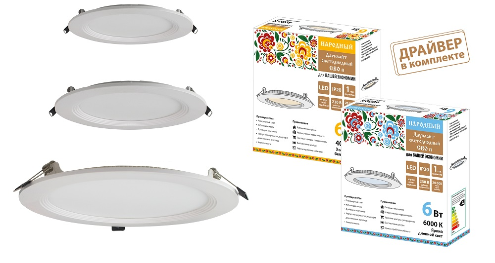 Светильник точечный круг 6Вт 4000К TDM СВО Даунлайт 210Лм d90мм пластик белый (100)
