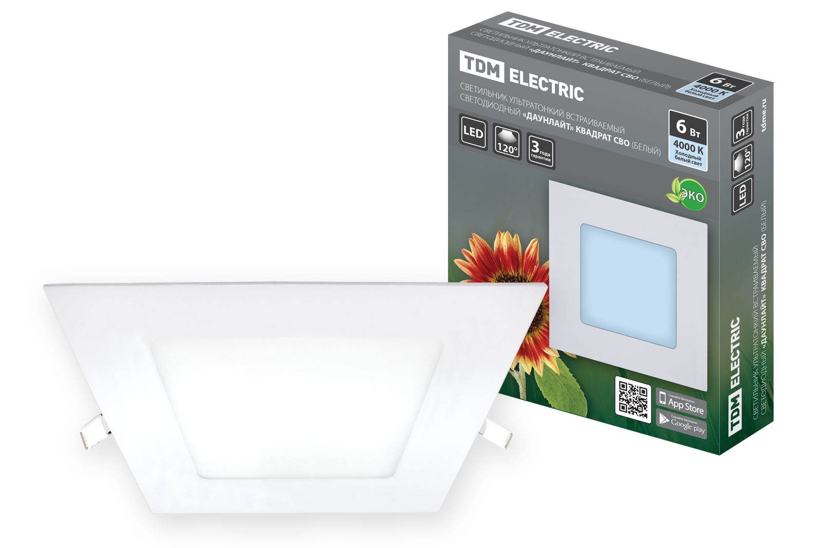 Светильник точечный квадрат 6Вт 4000К TDM СВО Даунлайт 380Лм 120мм белый (40)