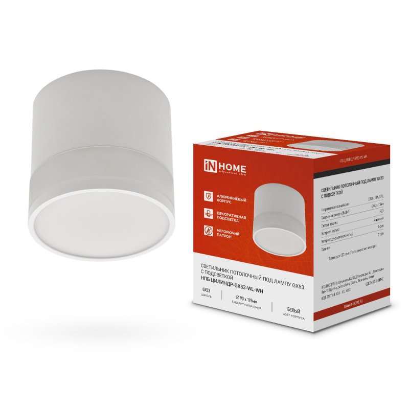 Светильник накладной GX53 Inhome ЦИЛИНДР-GX53-WL-WH 90х115мм белый