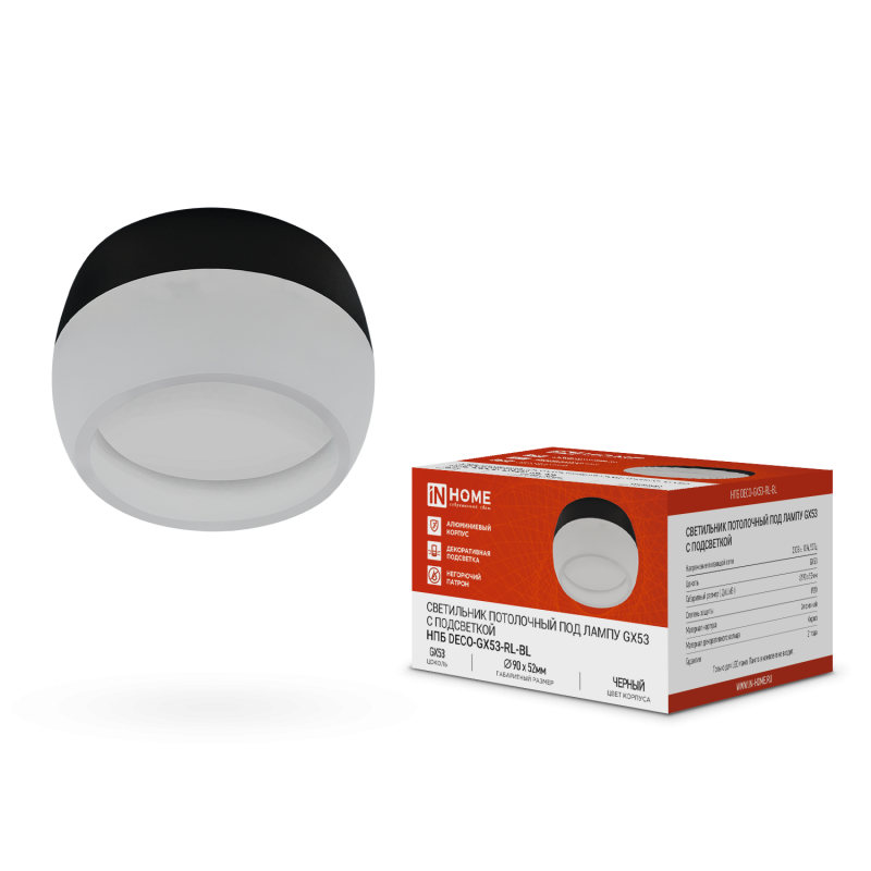 Светильник накладной GX53 Inhome DECO-GX53-RL-BL 90х52мм черный