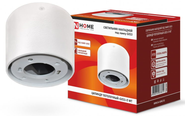 Светильник накладной потолочный GX53 InHome ЦИЛИНДР-GX53 П-WT пластик 90x90мм белый