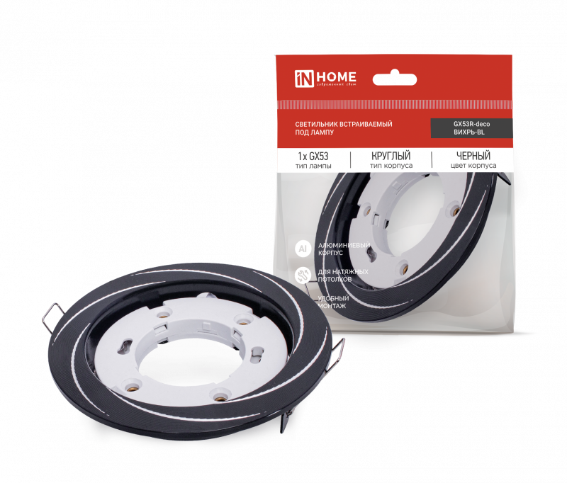 Светильник встраиваемый GX53 InHome GX53R-deco ВИХРЬ-BL 110x18мм черный