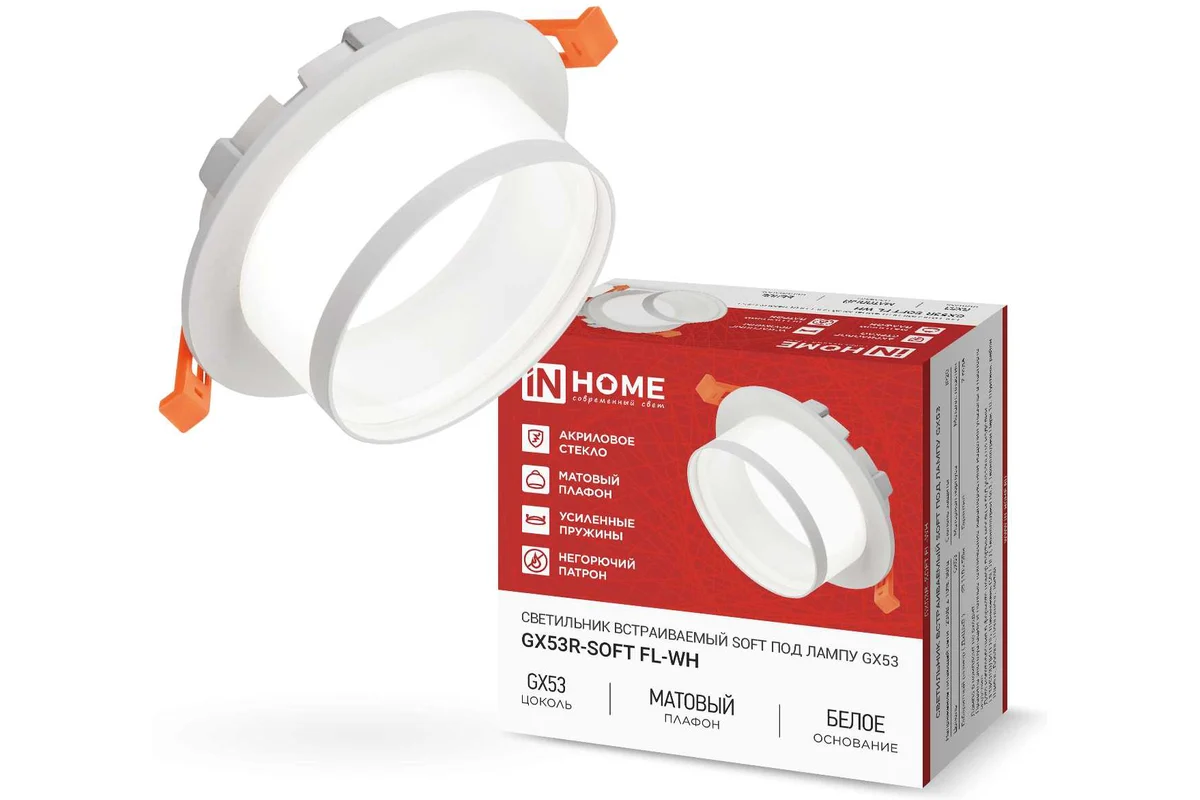 Светильник встраиваемый GX53 InHome GX53R-SOFT FL-WH 110х58мм белый+матовый плафон