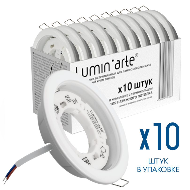 Светильник точечный GX53 106х22мм 10шт/упак кольцо Белый глянец Wolta