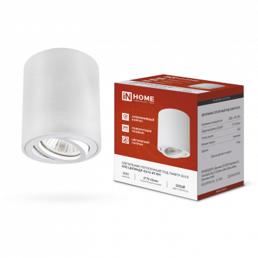 Светильник накладной GU10 Inhome ЦИЛИНДР-GU10-RT-WH 70х84мм карданный белый