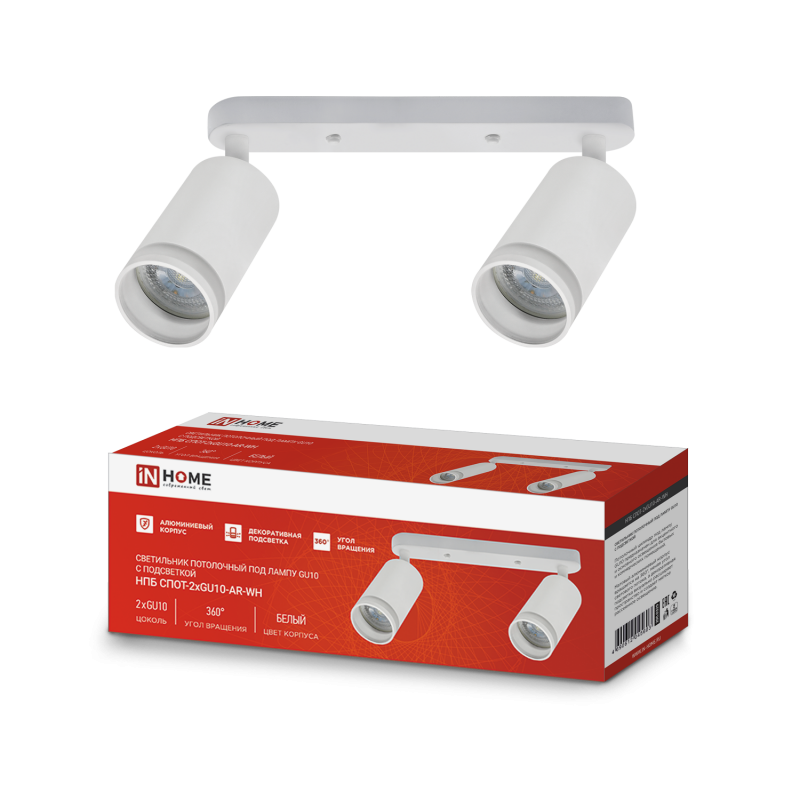 Светильник спот 2xGU10 AR-WH 55х165x260мм белый InHome