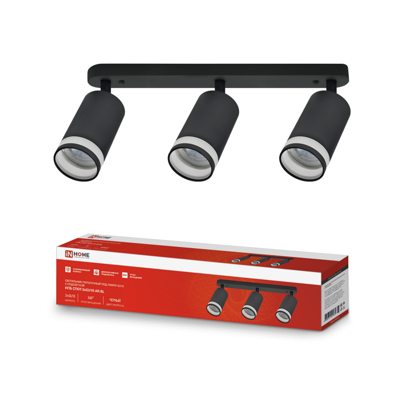 Светильник спот 3xGU10 СПОТ-3xGU10-AR-BL 56х165x350мм черный InHome