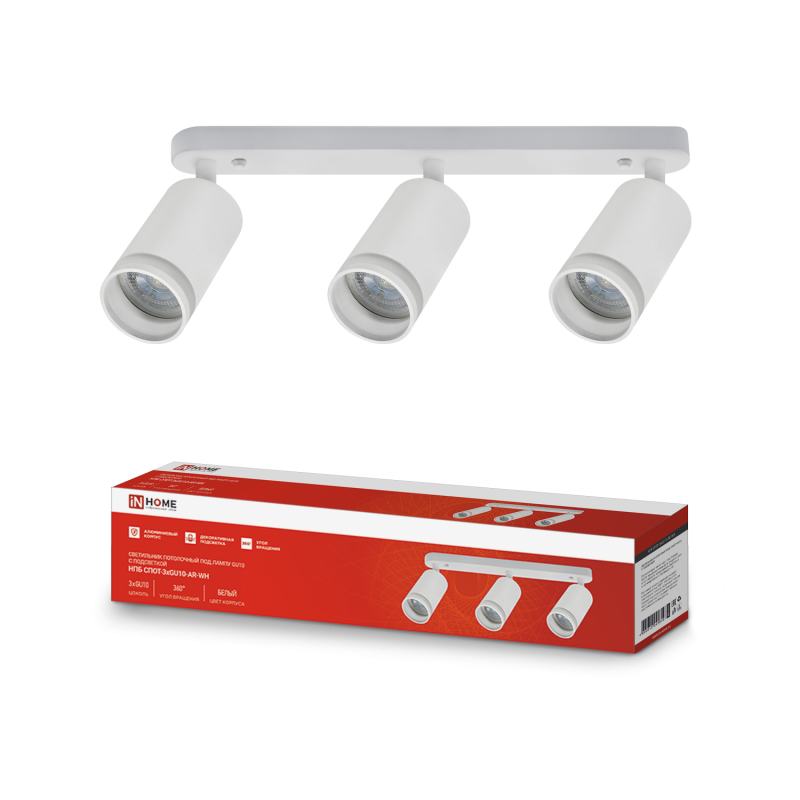 Светильник спот 3xGU10 СПОТ-3xGU10-AR-WH 56х165x350мм белый InHome