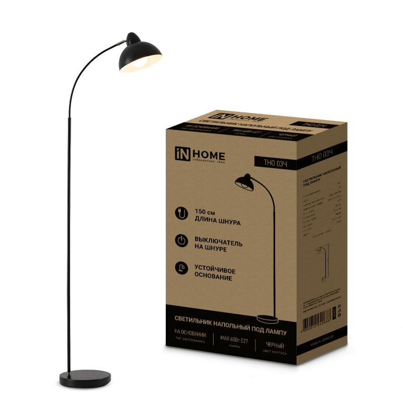 Торшер 1хЕ27 Inhome ТНО 03Ч 60Вт ЧЕРНЫЙ (1)