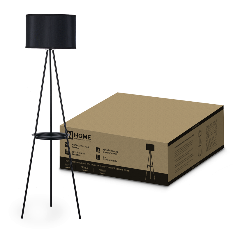 Торшер 1хЕ27 InHome ТНО 04ПВ-BB полка черный абажур черная тренога