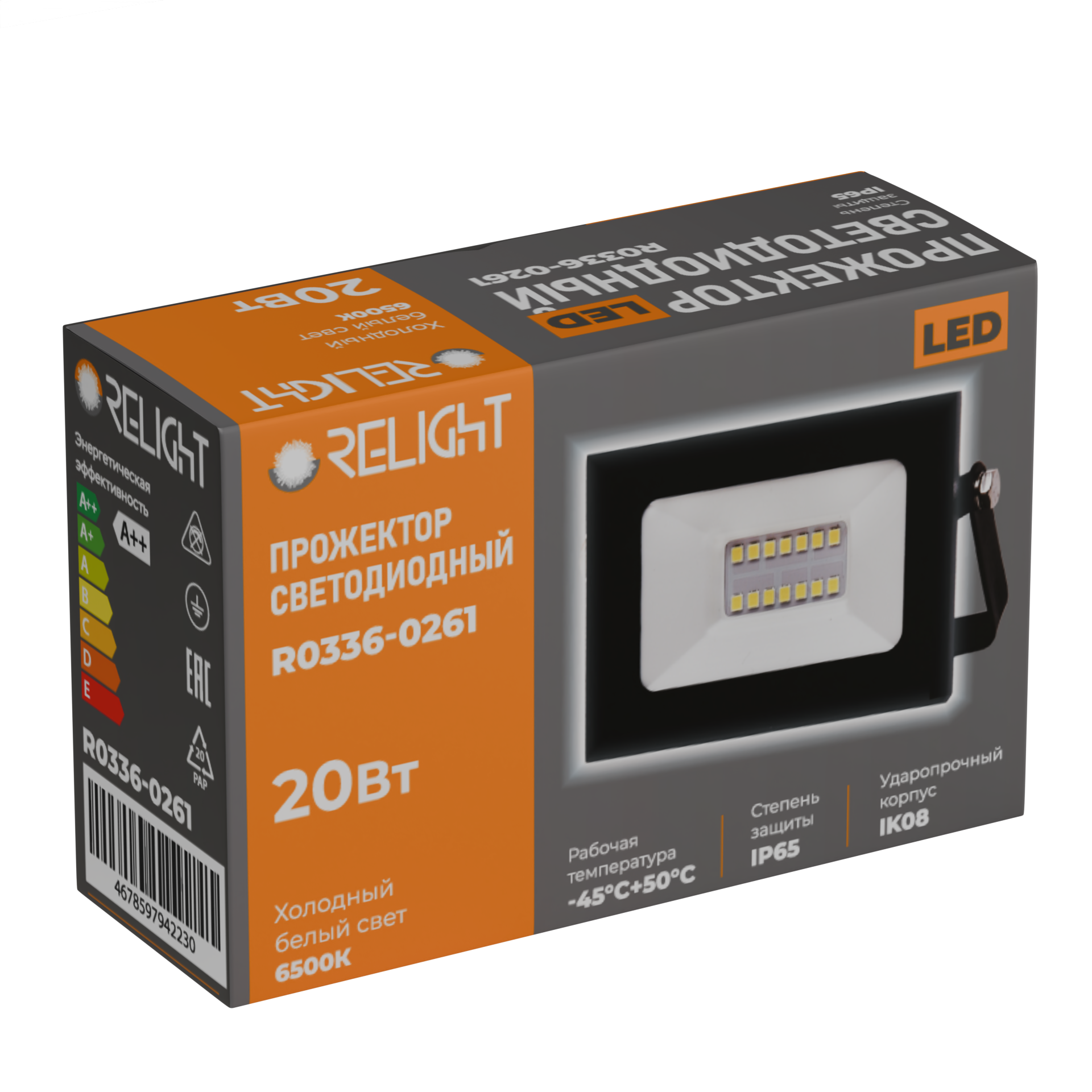 Прожектор диодный 20Вт 6500К IP65 1600Лм черный Relight (60)