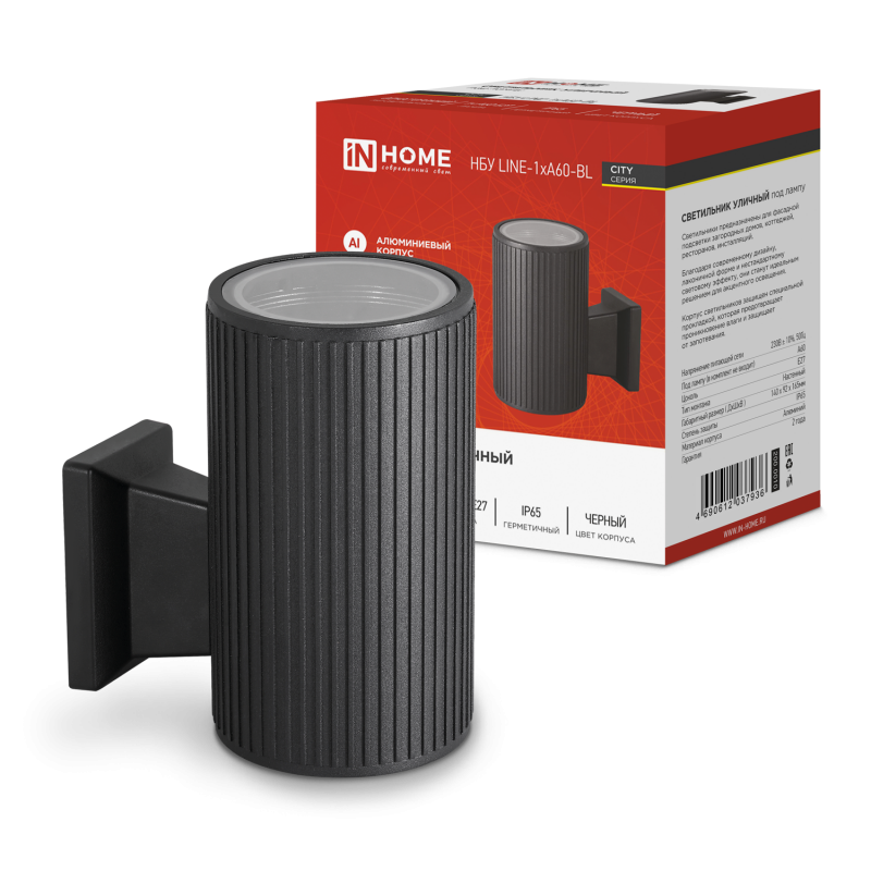 Светильник уличный настенный 1хА60 Inhome НБУ LINE-1хA60-BL алюминиевый E27 черный IP65