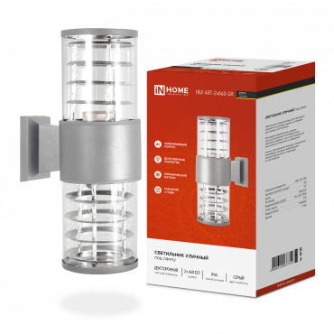 Светильник уличный настенный 2хА60 Inhome ART-2хA60-GR IP65 серый металл 325x105мм
