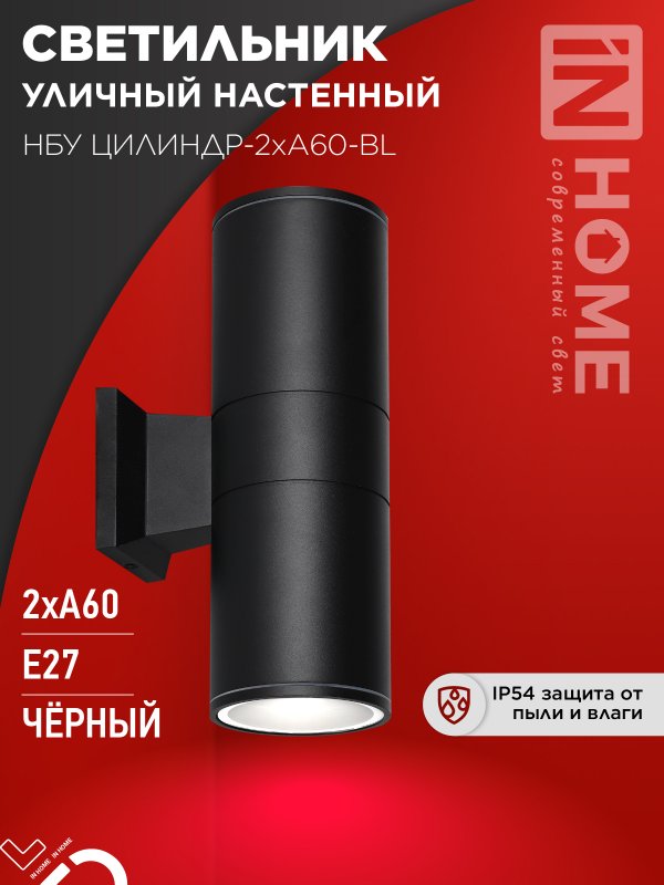 Светильник уличный настенный 2xЕ27 InHome НБУ ЦИЛИНДР-BL IP54 металл черный