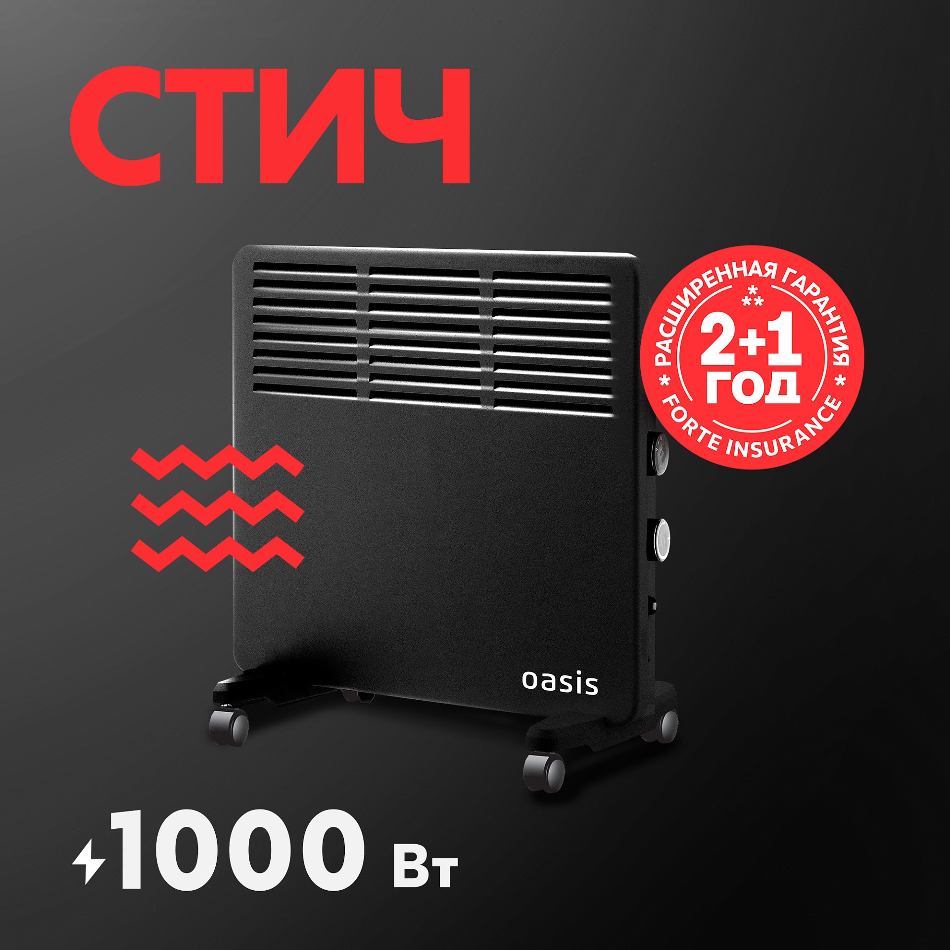 Конвектор 1кВт колёсики Стич Oasis VK-10B чёрный