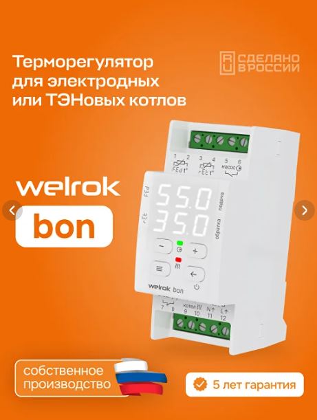 Терморегулятор Welrok bon 16А 220В для котлов на ДИН-рейку