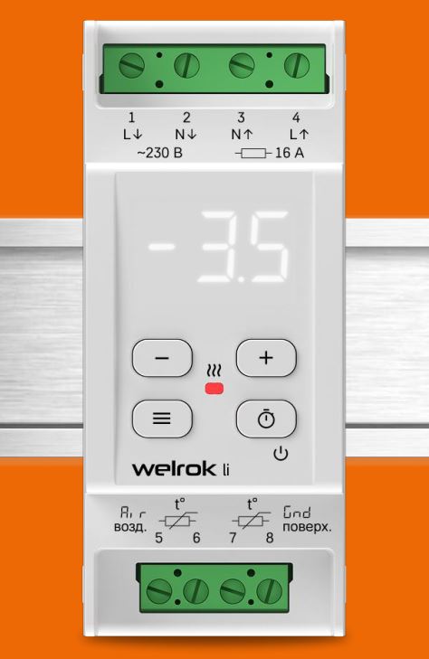 Терморегулятор Welrok li 16А 220В для снеготаяния на ДИН-рейку