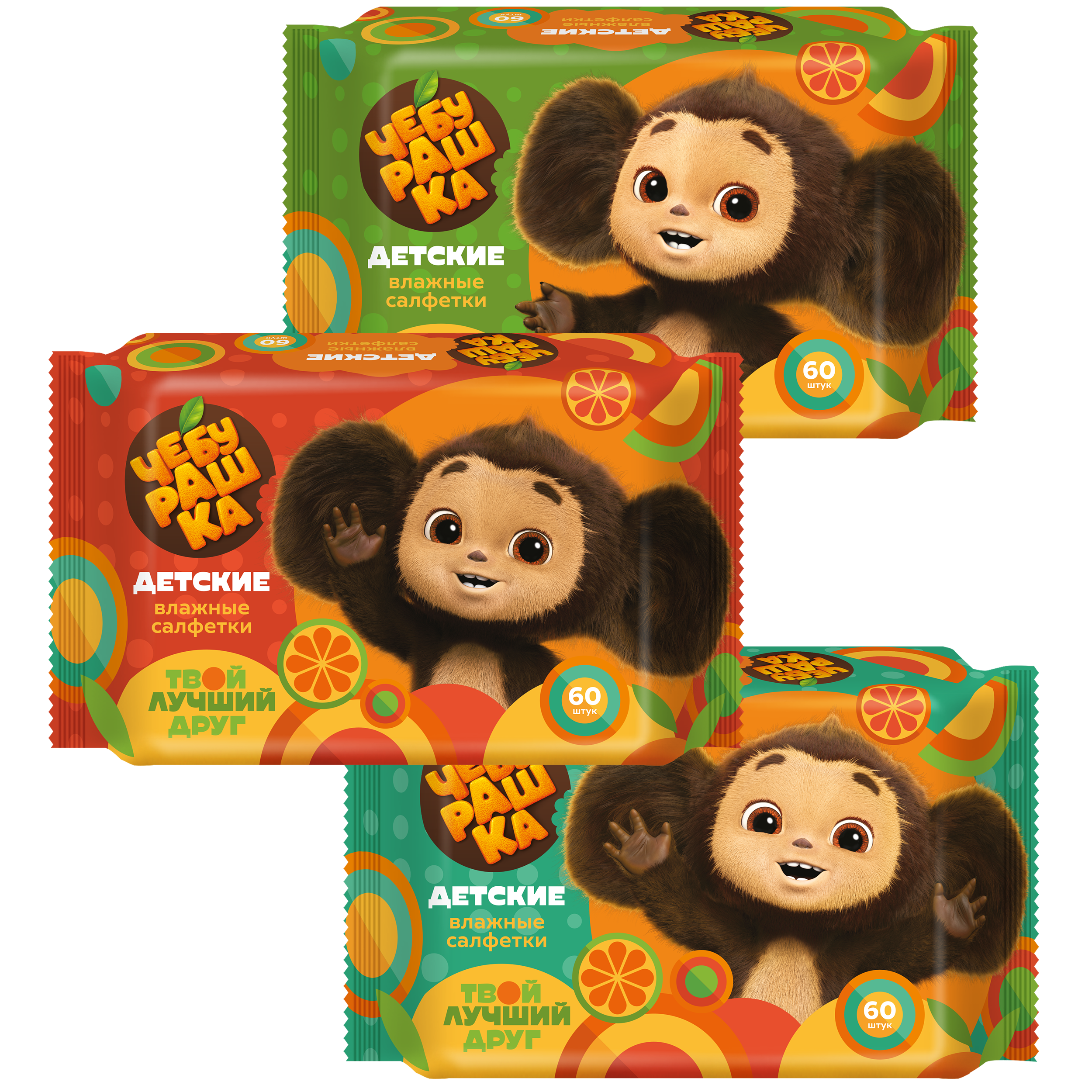 Салфетки влаж детские 60шт Чебурашка микс 3вида (30)