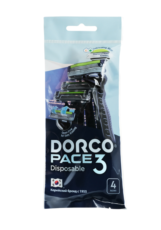 Станок одноразовый Dorco Pace3 3лезвия увл полоска 4шт (12/144)