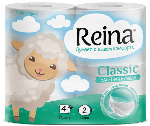 Бумага туалетная Reina 2сл Classic 4шт (12/384)