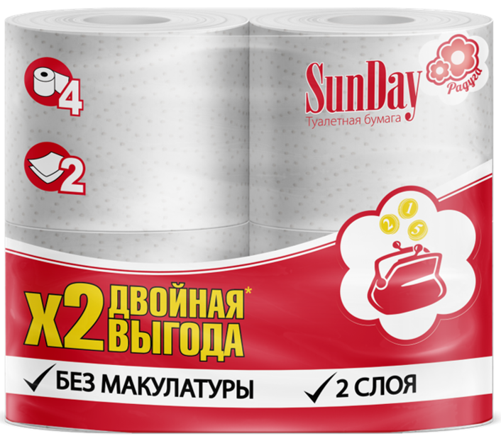 Бумага туалетная SunDay 2сл 4шт (30/480)
