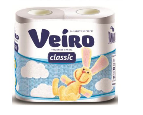 Бумага туалетная Veiro 2слоя Classic 4шт белый (12/576)*