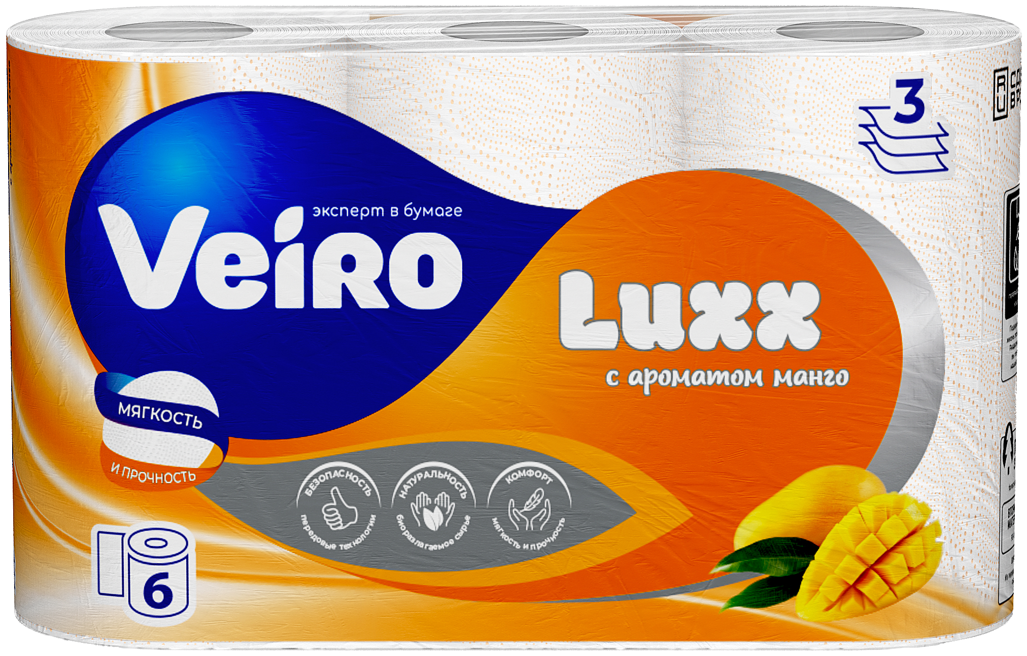 Бумага туалетная Veiro 3слоя Luxoria aroma 6шт Манго (12/384)