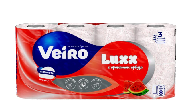 Бумага туалетная Veiro 3слоя Luxx Aroma Арбуз 8шт (6/288)