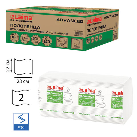 Полотенца бумажные V-сложение 200листов 2сл 23х22 Laima Advanced H3 (20)