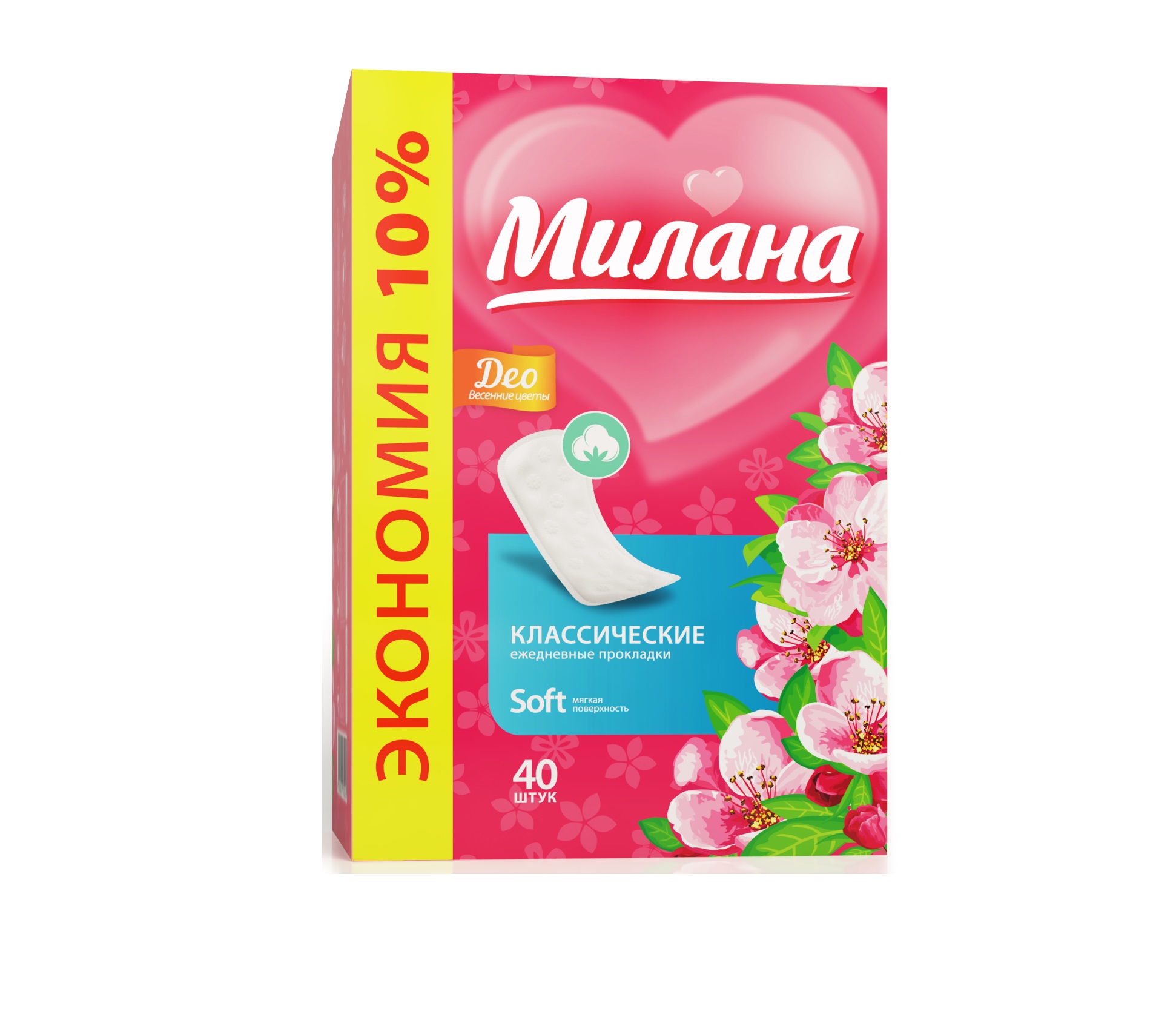 Прокладки ежедневные классические Милана soft deo Весенние цветы Эконом 40шт (30)