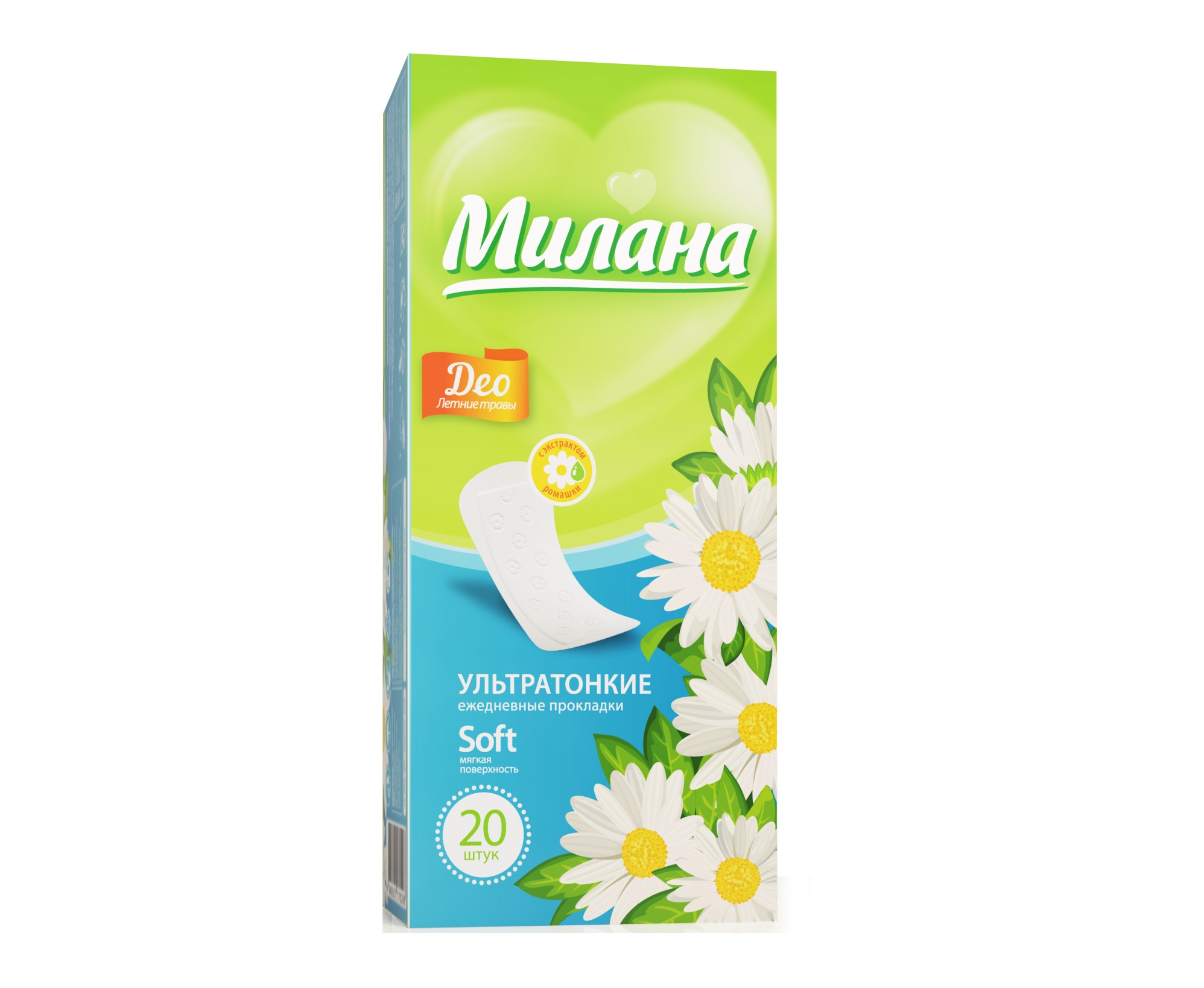Прокладки ежедневные ультратонкие 20шт Милана soft deo Летние травы (48)