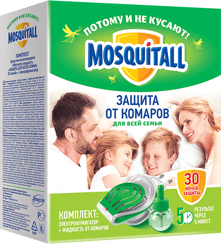 Комплект от комаров Mosquitall: жидкость 30ночей+фумигатор нежн защита (6) акция