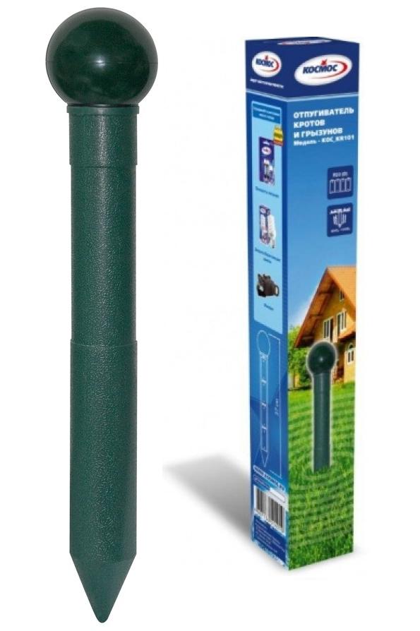 Ультразвуковой отпугиватель кротов и грызунов Космос KOC_KR101, работает от 3 батареек типа R20 (D) (не входят в комплект). Во время работы данное изделие вызывает у грызунов сильнейшее раздражение и заставляет их уйти с зоны его действия (10 метров). Характеристики: