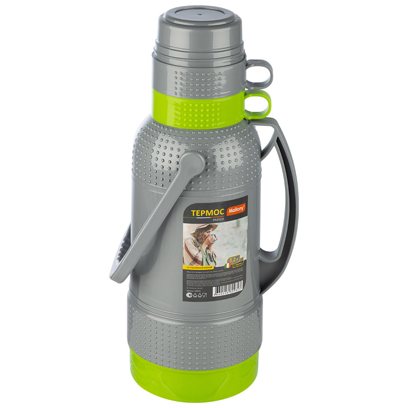 Термос 3,2л стеклянная колба пластиковый корпус 2 чашки Pratico (12)