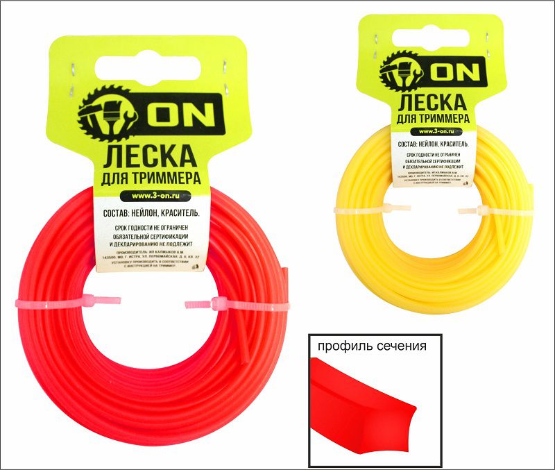 Леска для триммера 2,4мм 15м квадратная ON (300)