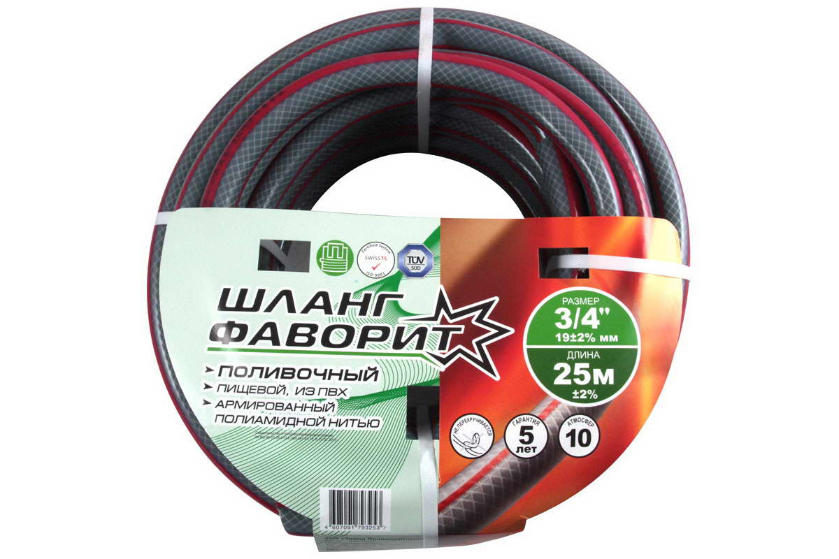Шланг д/полива d3/4" ПВХ 25м трехслойный армированный стенка 2,5мм Фаворит (60)