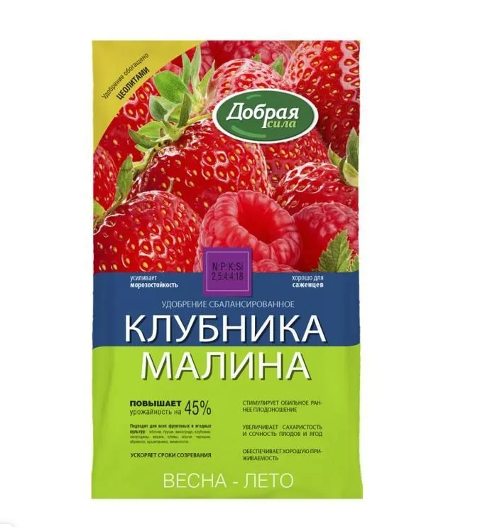 Удобрение сухое Добрая сила 0,9кг Клубника-Малина (12)