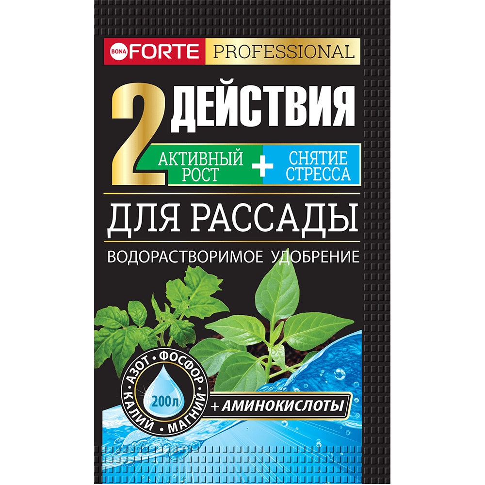 Удобрение водорастворимое с аминокислотами 100гр д/рассады Bona Forte ш/б (10/30)